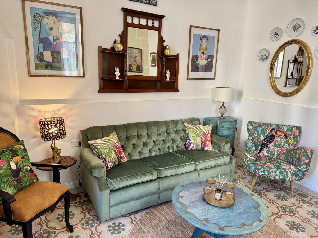 Located on the ground floor, 1 bedroom and enjoying a corner layout. Upon entering through an antiporta, is the living room, where old meets new. Thrown together they make up a very comfortable, fun and eclectic mix of furniture, full kitchen with all mod cons necessary for an enjoyable holiday and a sweet dining table with mix & match chairs. Bedroom is spacious with en-suite bathroom making this unit ideal for an intimate couple gateway.